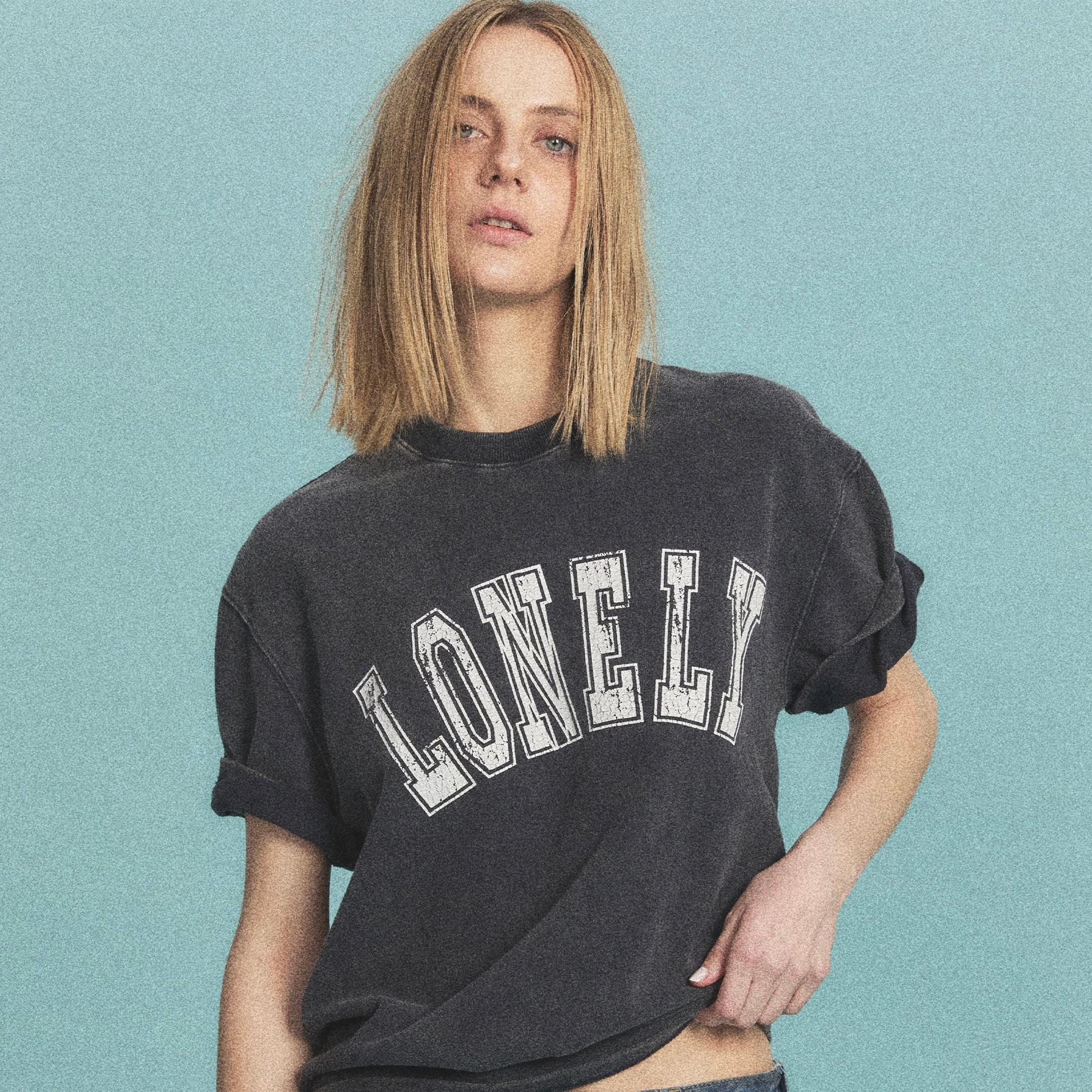 LONELY / LOVELY 洗舊短 T(深藍)